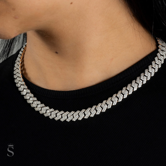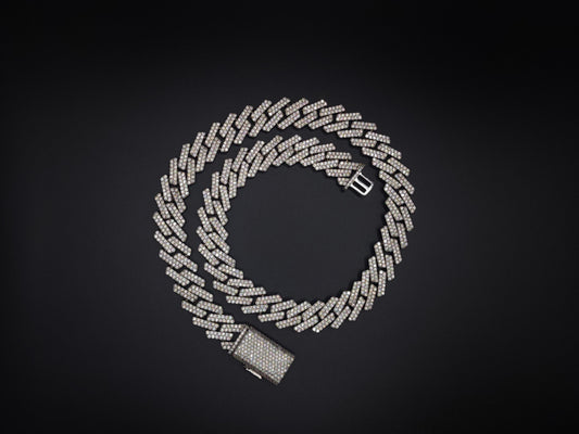 15mm Moissanite Prong Cuban Link Chain 925 Silver