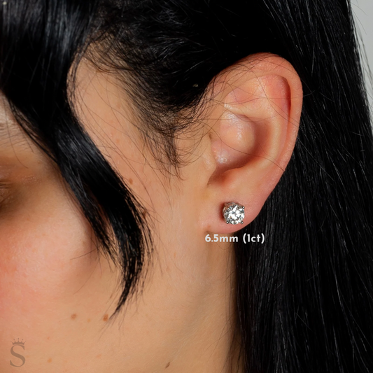 Round Moissanite Stud Earrings 925 Silver (4mm-9mm)