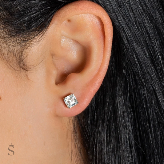 Aqua Blue Asscher Cut Moissanite Stud Earrings Silver (1ct-2ct)