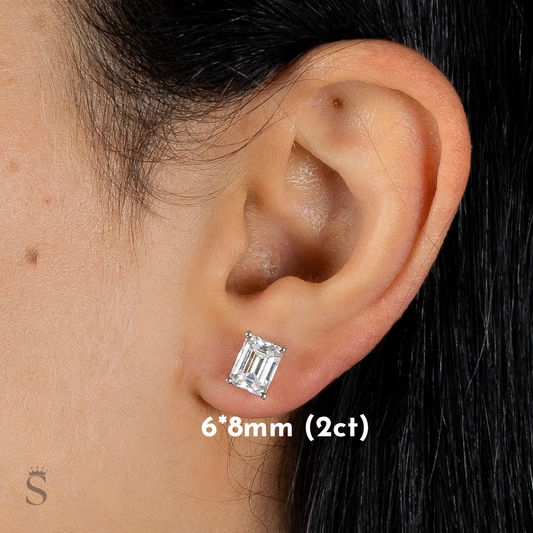 Pink Emerald Cut Moissanite Stud Earrings 1-2ct 925 Silver