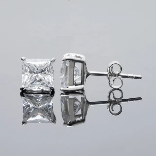 Aqua Blue Princess Cut Moissanite Stud Earrings Silver (1ct-2ct)