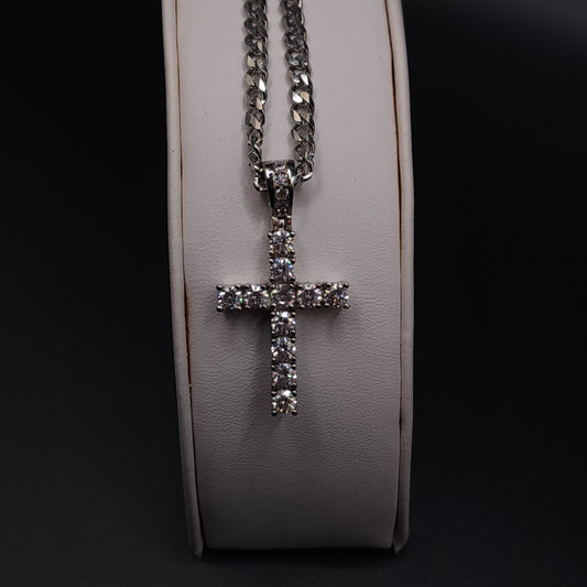 Moissanite Cross Pendant Medium 4mm Stones 925 Silver
