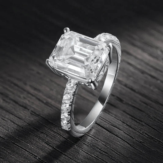 "The Spectacle" 4ct Emerald Cut Moissanite Engagement Ring 925 Silver