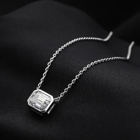 "The Presence" Emerald Cut 2ct Moissanite Necklace 925 Silver